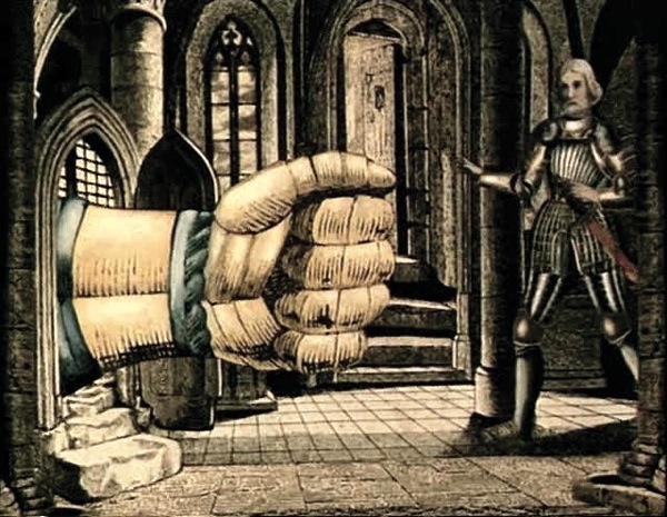 Hand of the ghost of Otranto confronting the villian